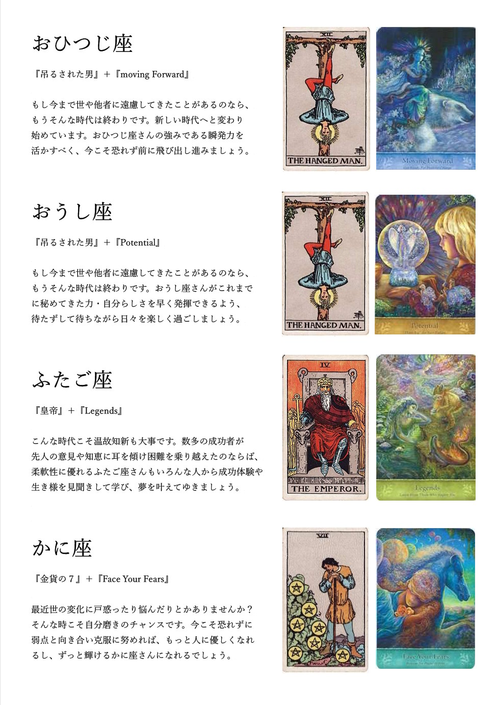 (占い方法:「星座ごとの特性」+「タロット1枚」+「オラクル1枚」)